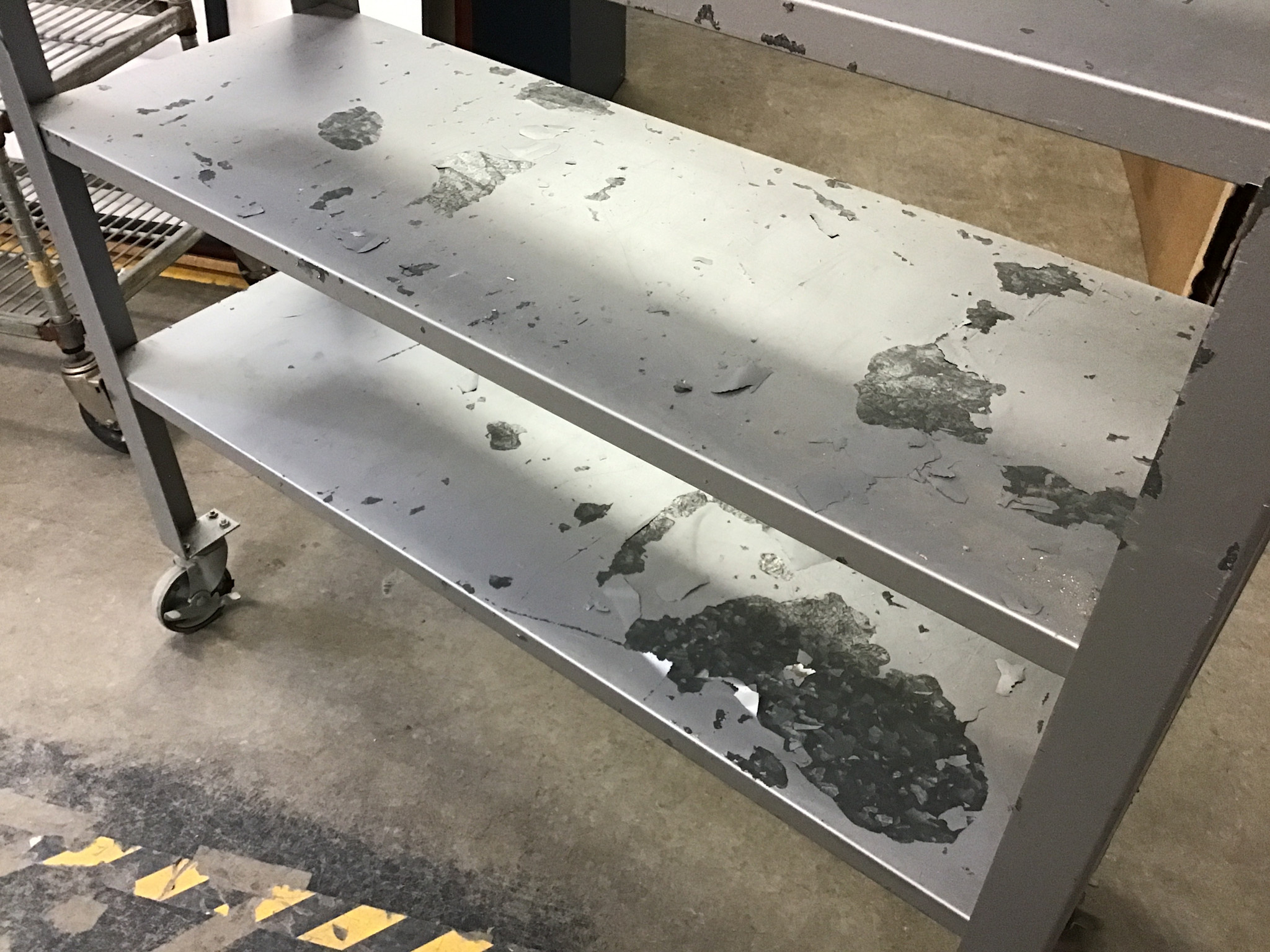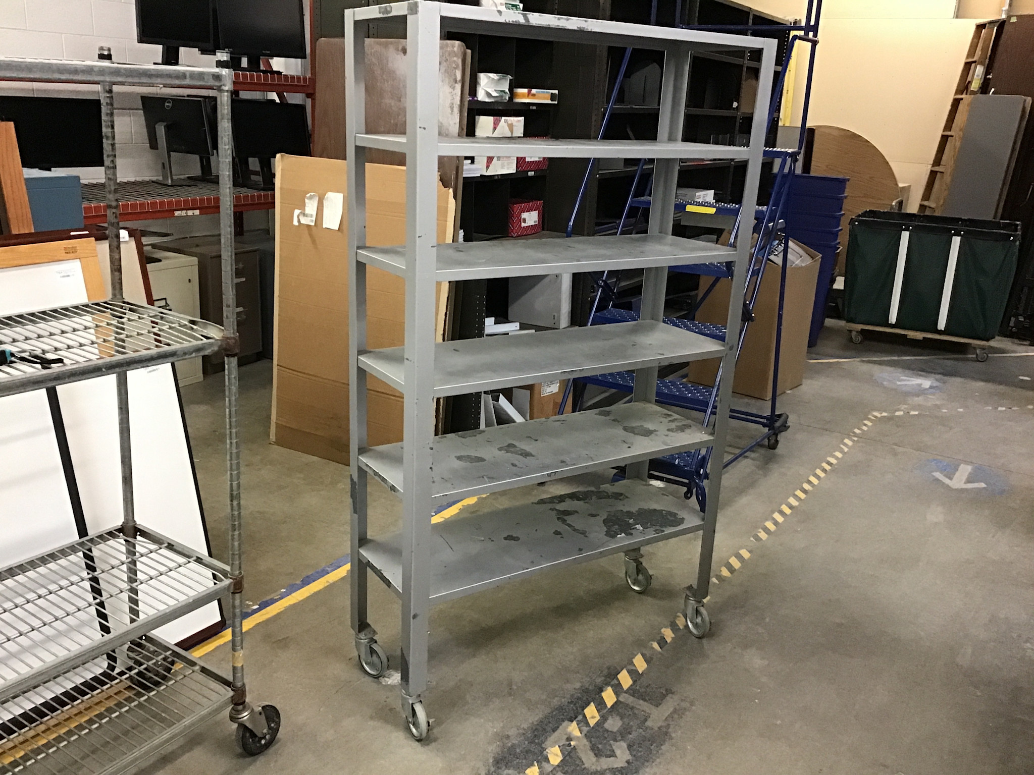 15x42x71” Metal storage rack on castors - some wear and flaking 1/23/26