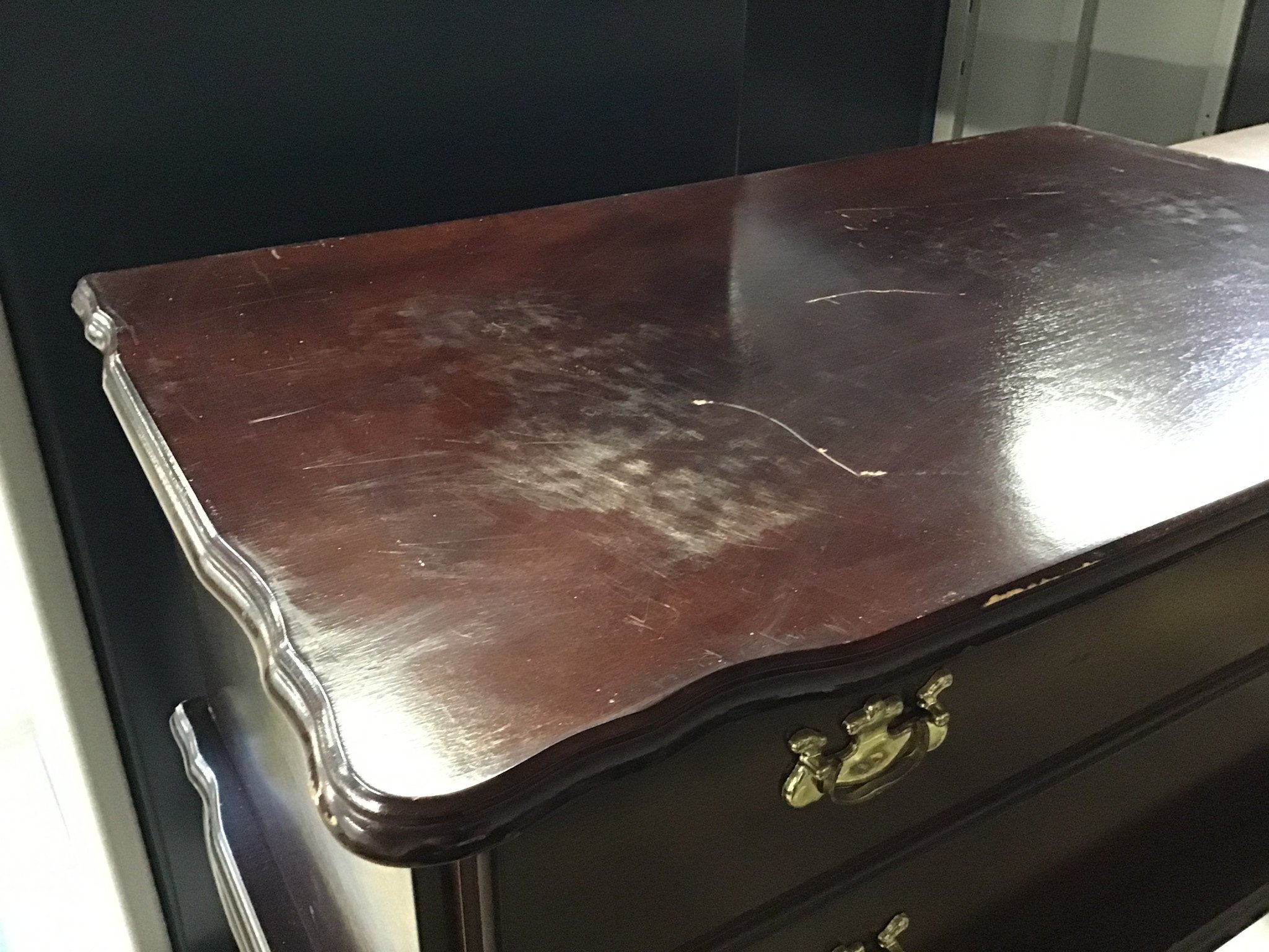 19x32x28” Dark wood nightstand with deep drawer - some scratches 12/10/25