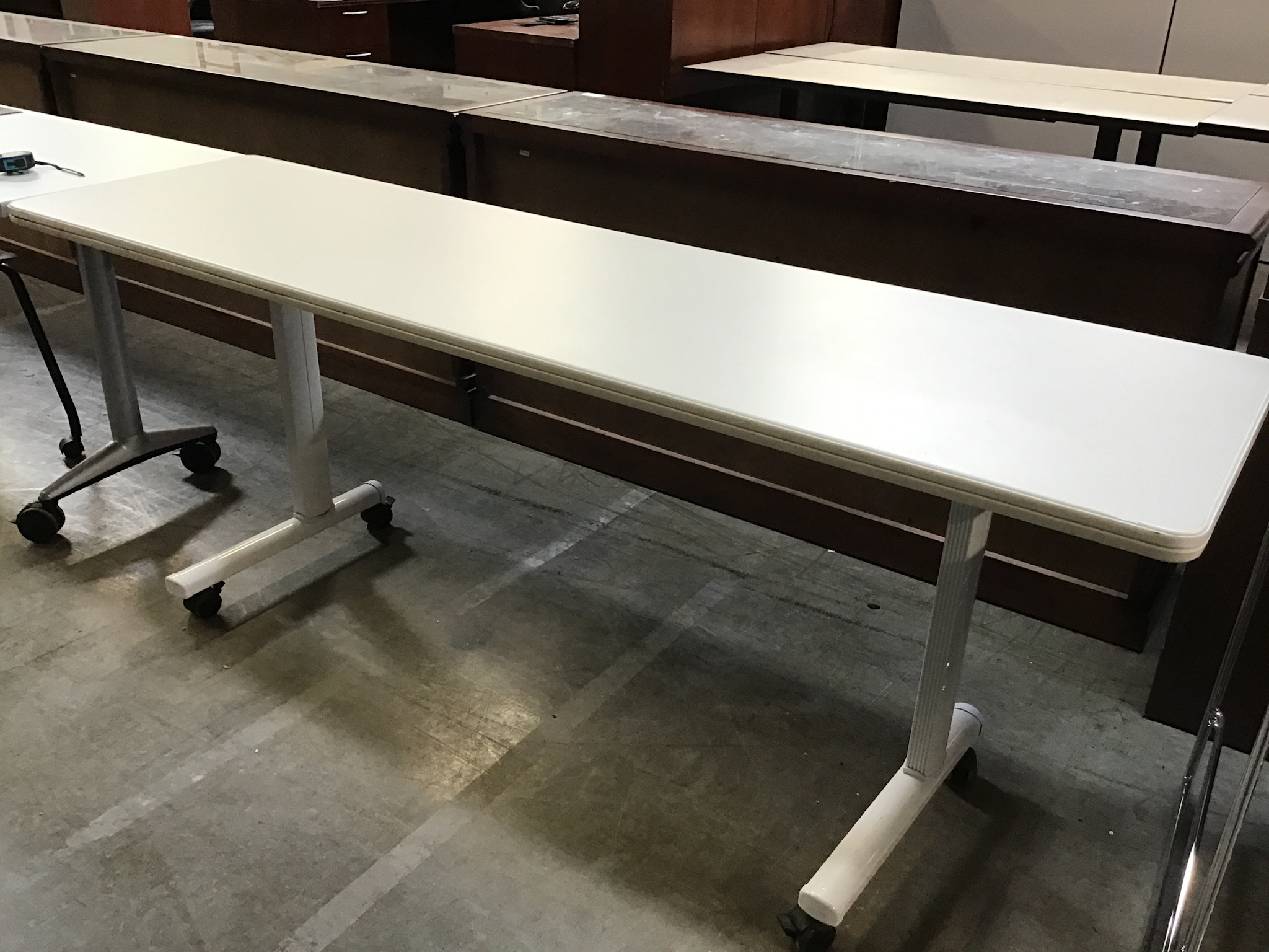 20x72x28 1/2” White speckled laminate seminar table on castors 10/6/25