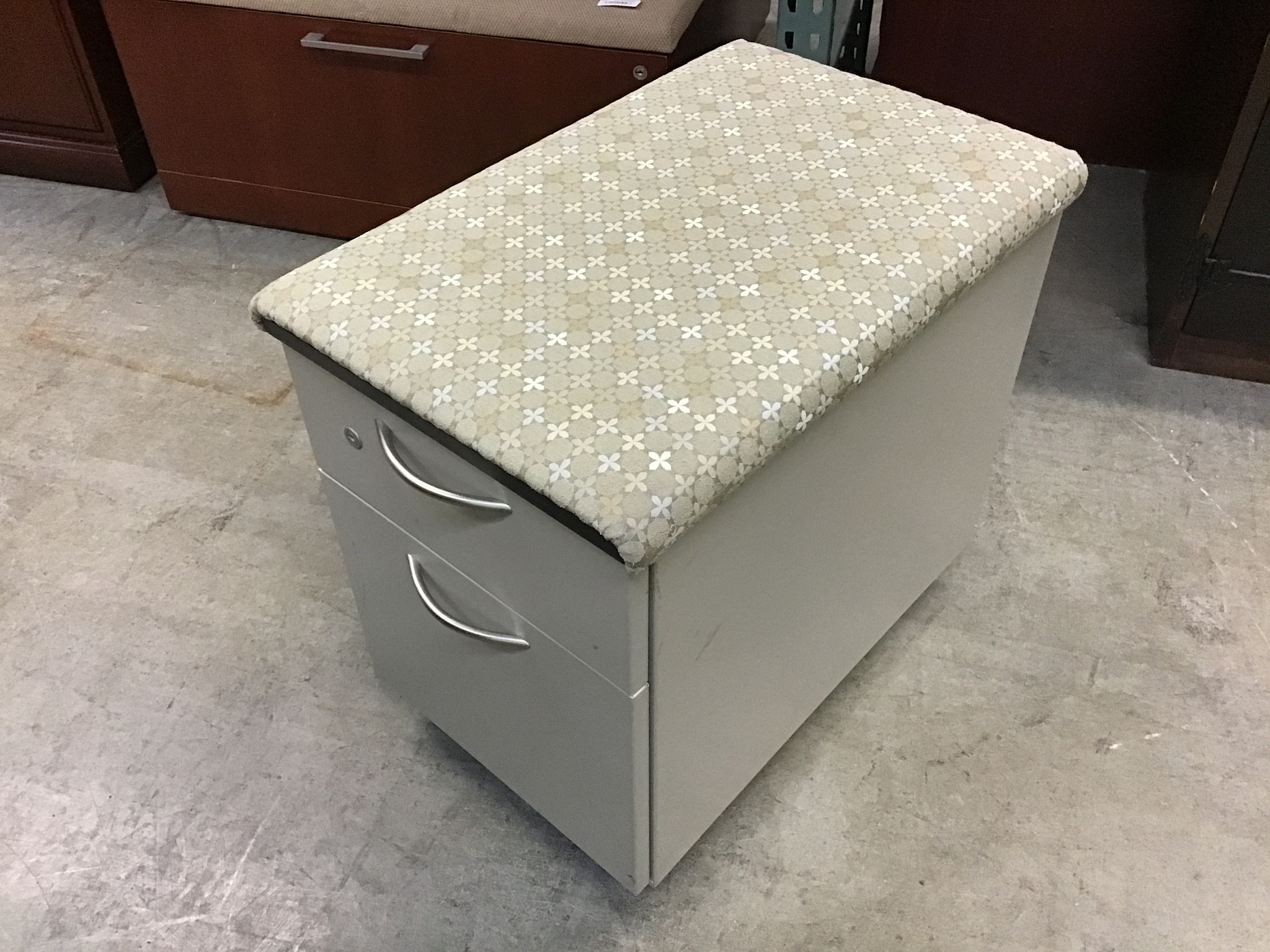 24x16x23” Beige metal 2 drawer storage and file cabinet with tan pattern cushioned top on castors 11/21/25