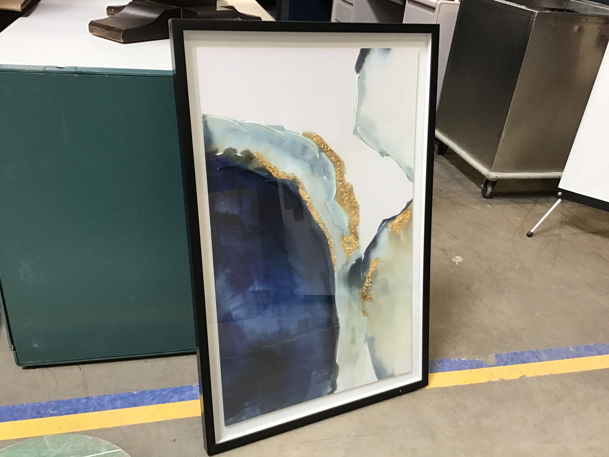 24x36” Blue white gold abstract framed artwork 2/24/26