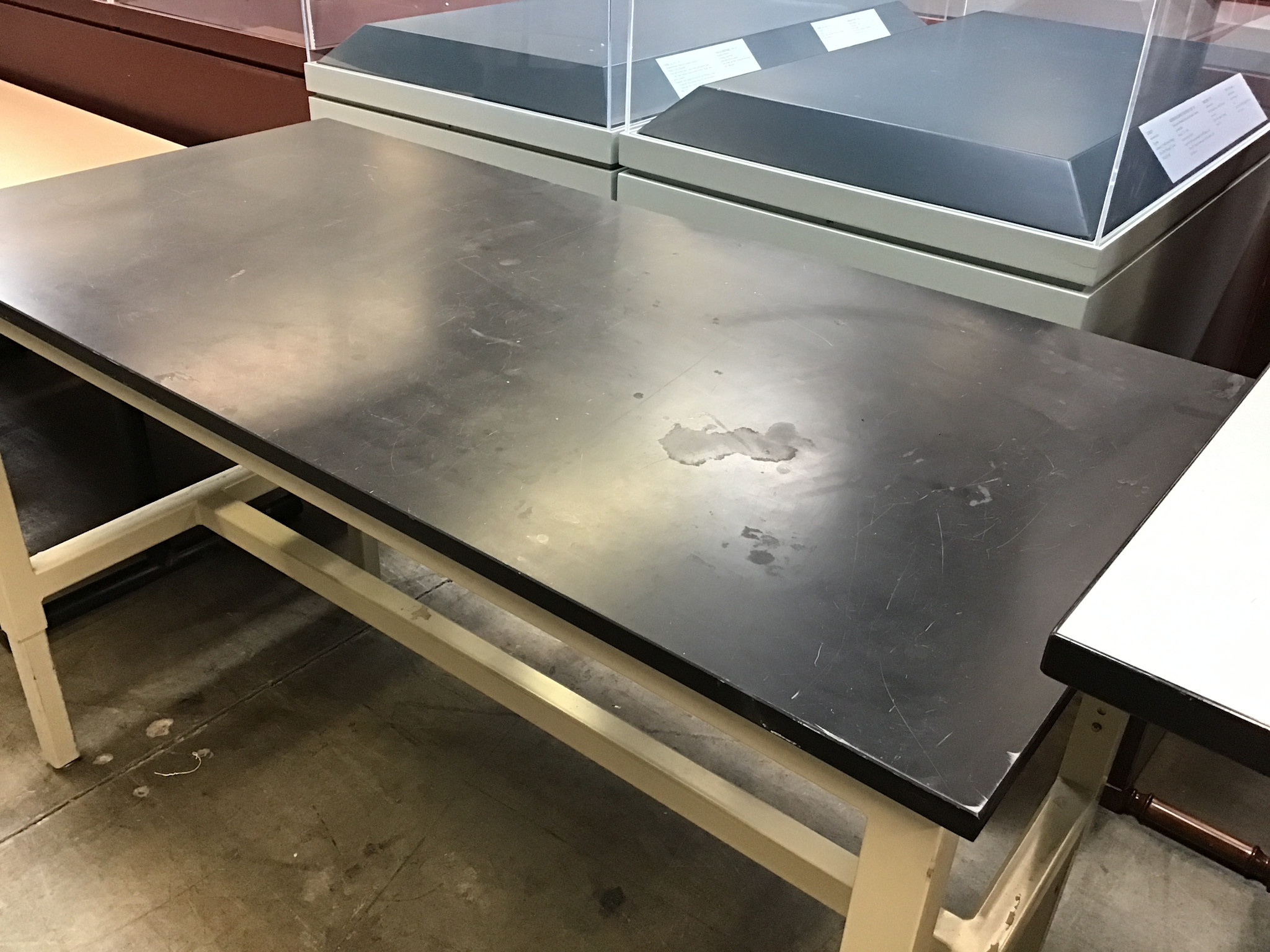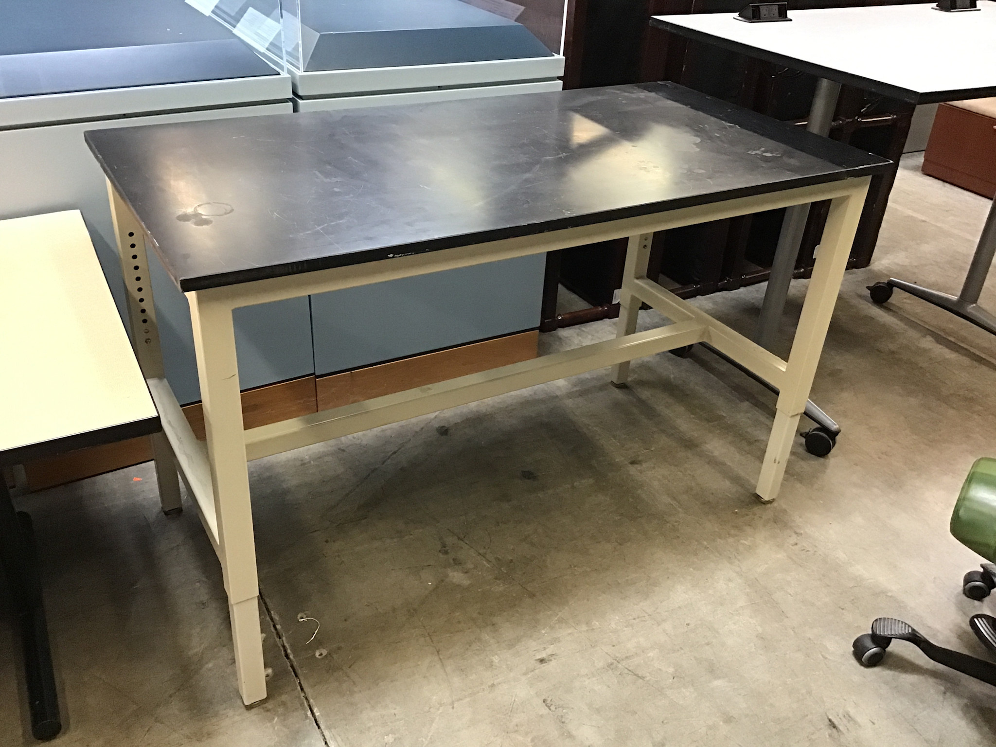 30x60 Black solid top beige metal frame height adjustable work table - some scratches and wear 10/6/25