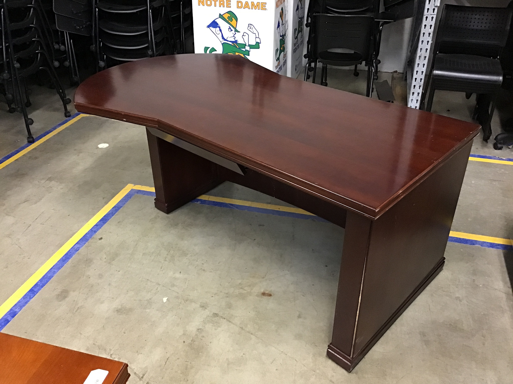 32x72x29” Cherry color wood desk with wide rounded end - some damage 12/3/25