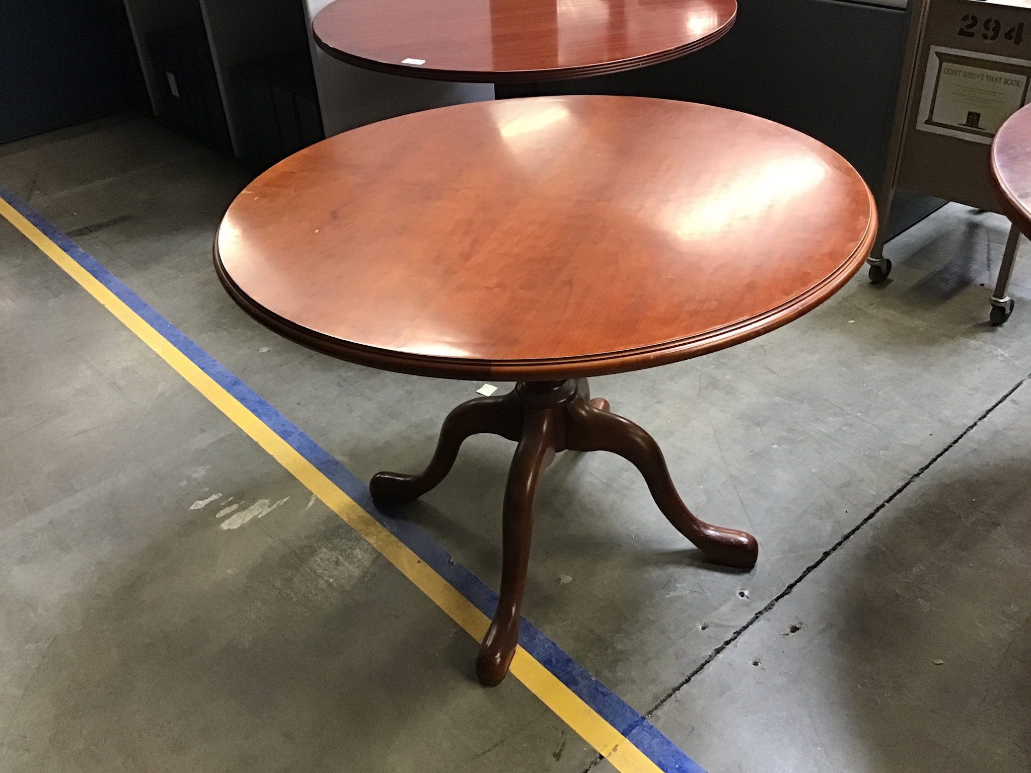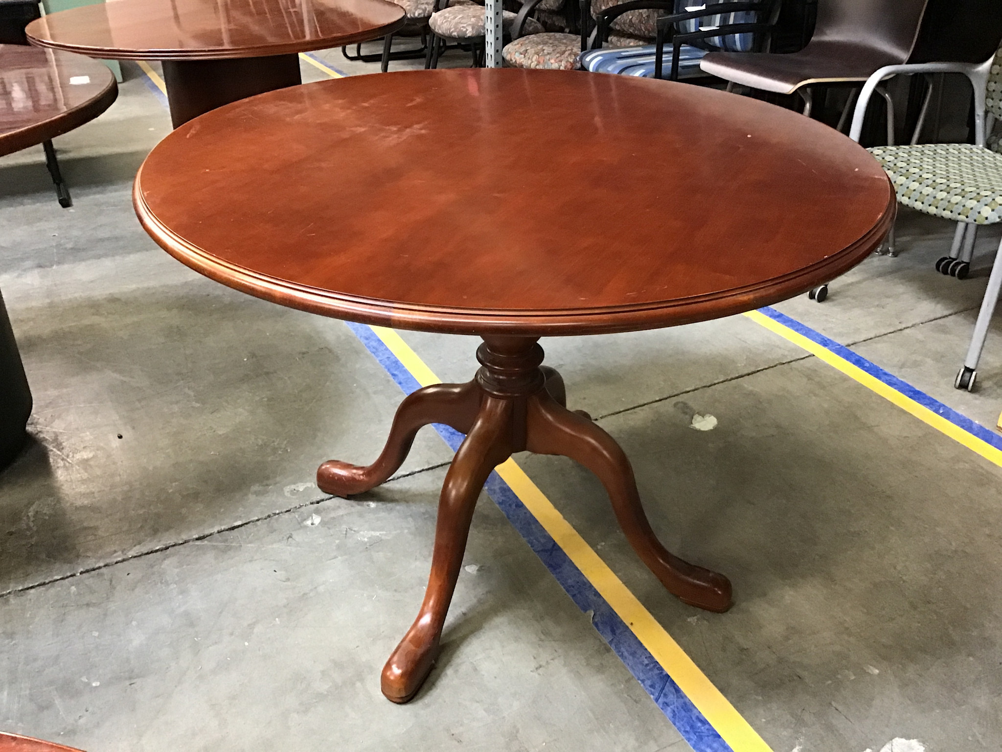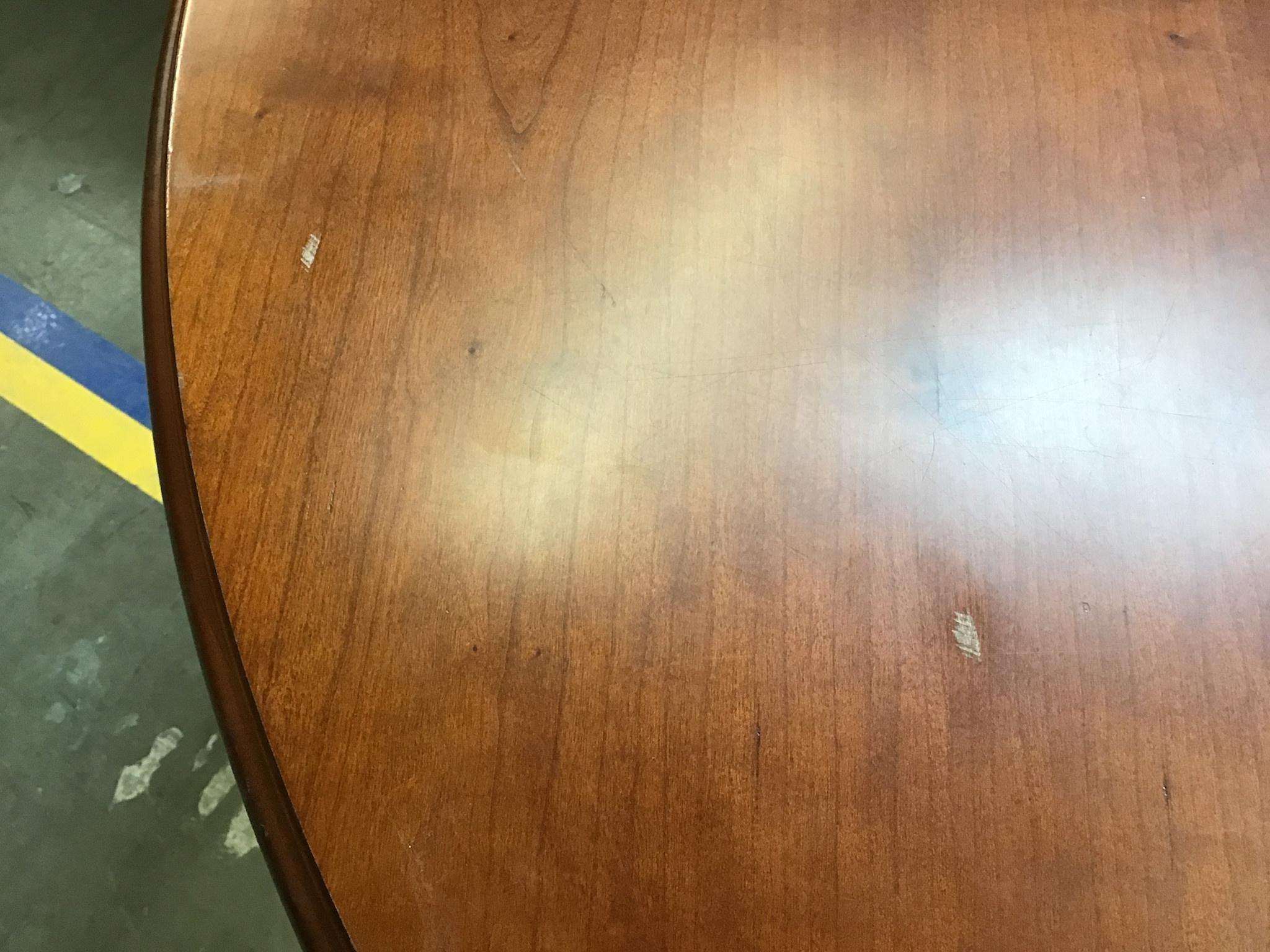 42” Light cherry wood round single pedestal table - light scuffs 3/24/26