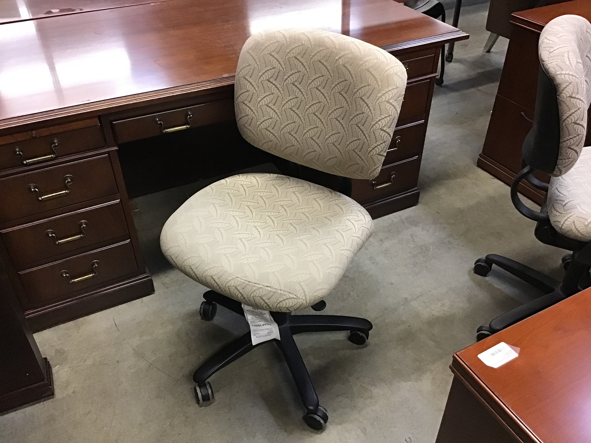 Beige leaf pattern adjustable desk chair on castors - no arms 12/10/25