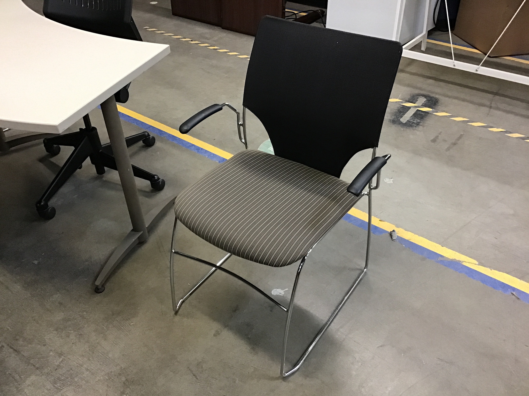 Black mesh back tan stripped cushioned set metal frame side chair 11/19/25