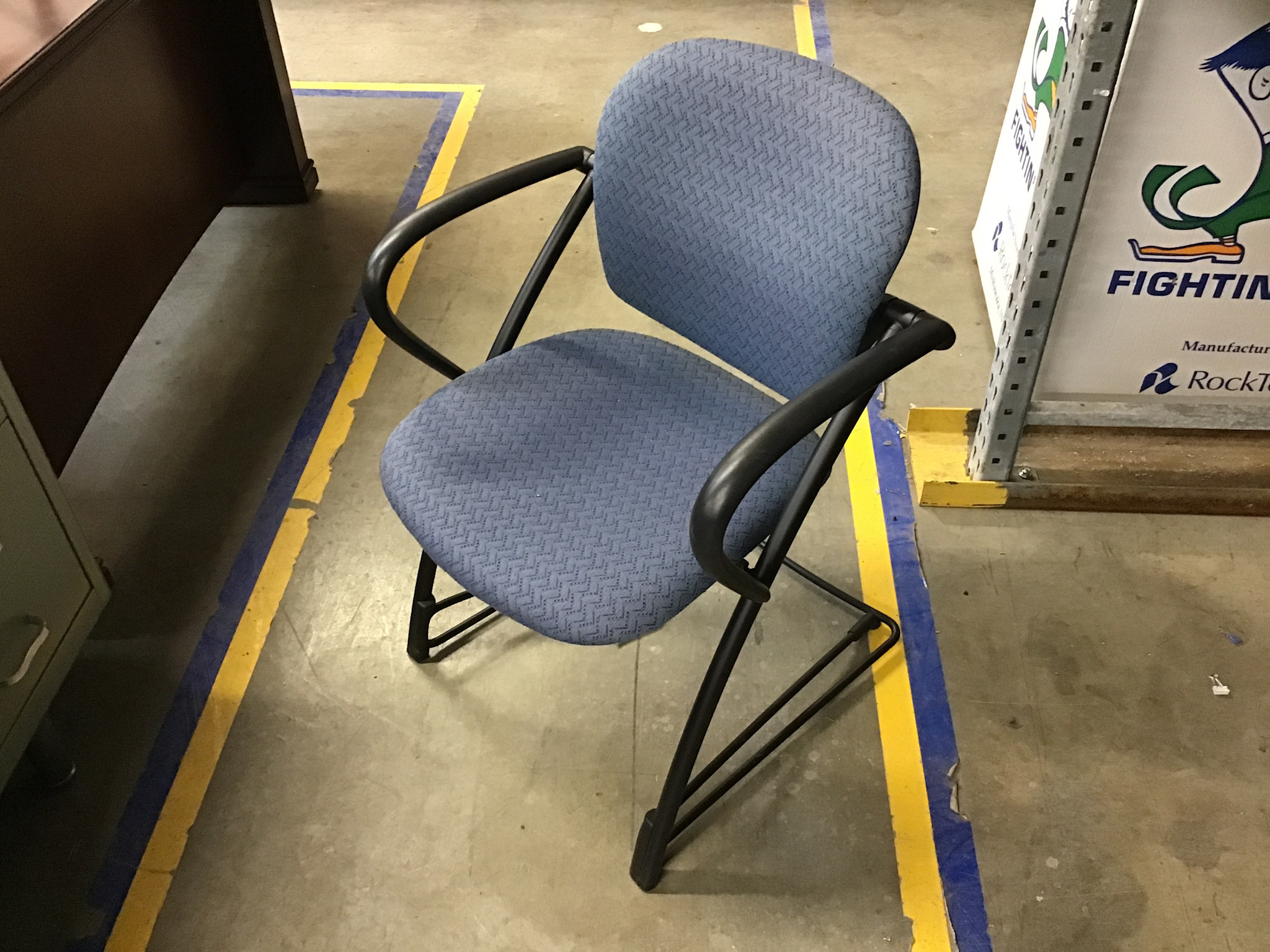 Blue pattern cushioned seat black frame side chair 2/4/26