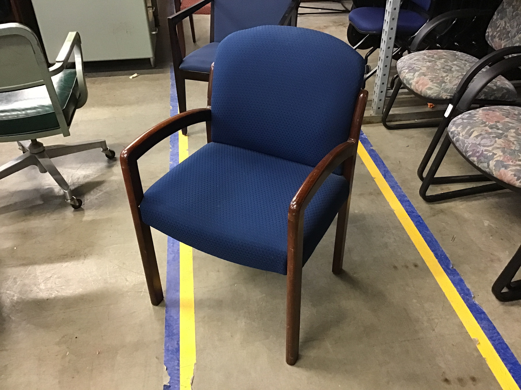Blue pattern cushioned seat wood frame side chair 2/5/26