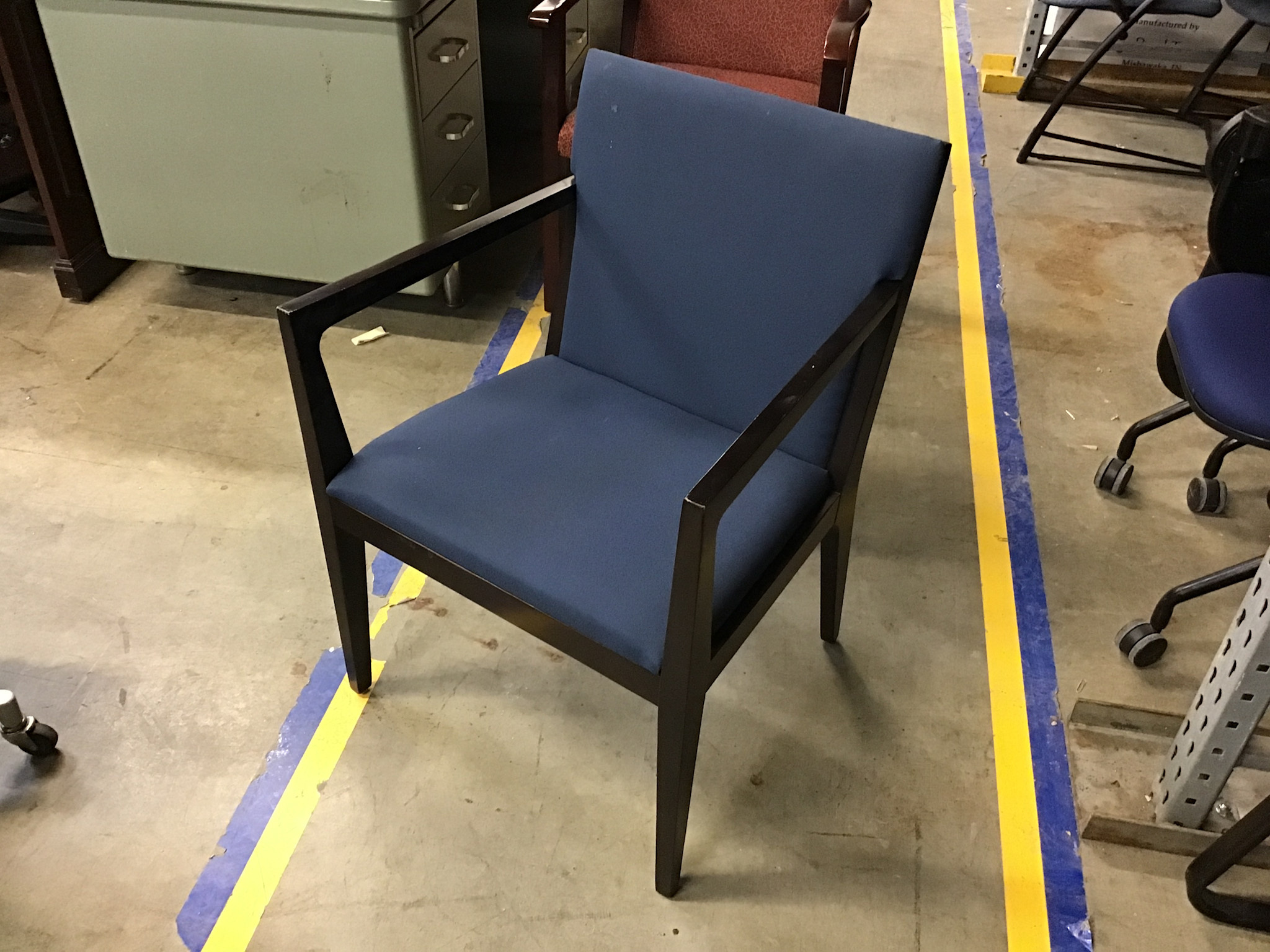 Dark blue cushioned seat dark wood frame side chair 2/5/26