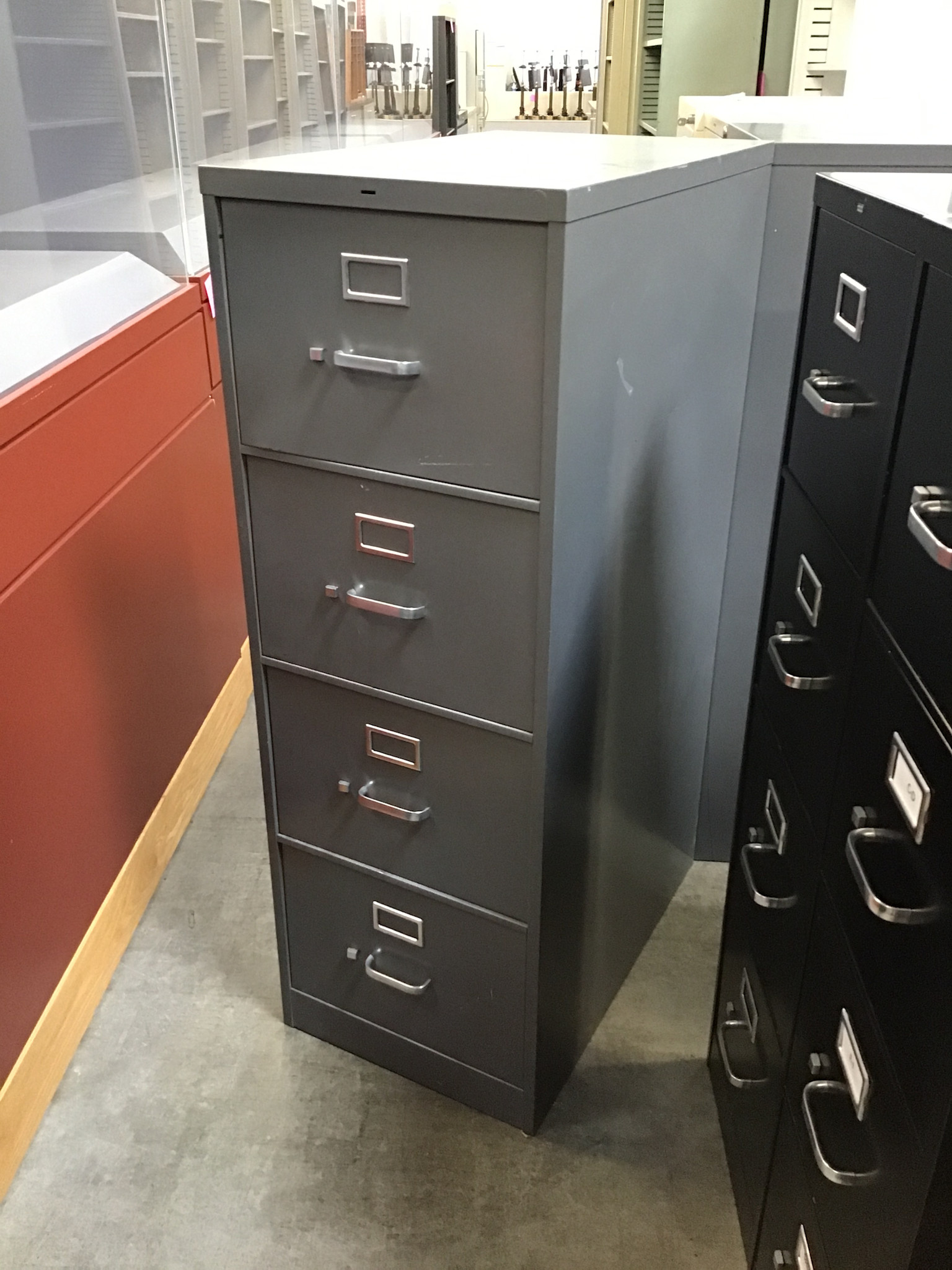Grey metal 4 drawer legal size vertical file cabinet 2/10/26