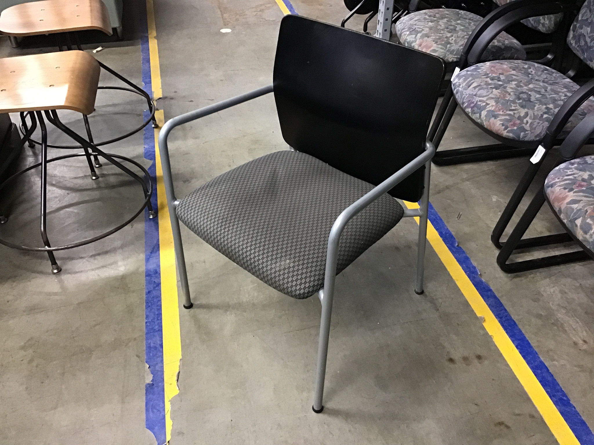 Metal frame dark wood back grey pattern cushioned seat side chair 1/23/26