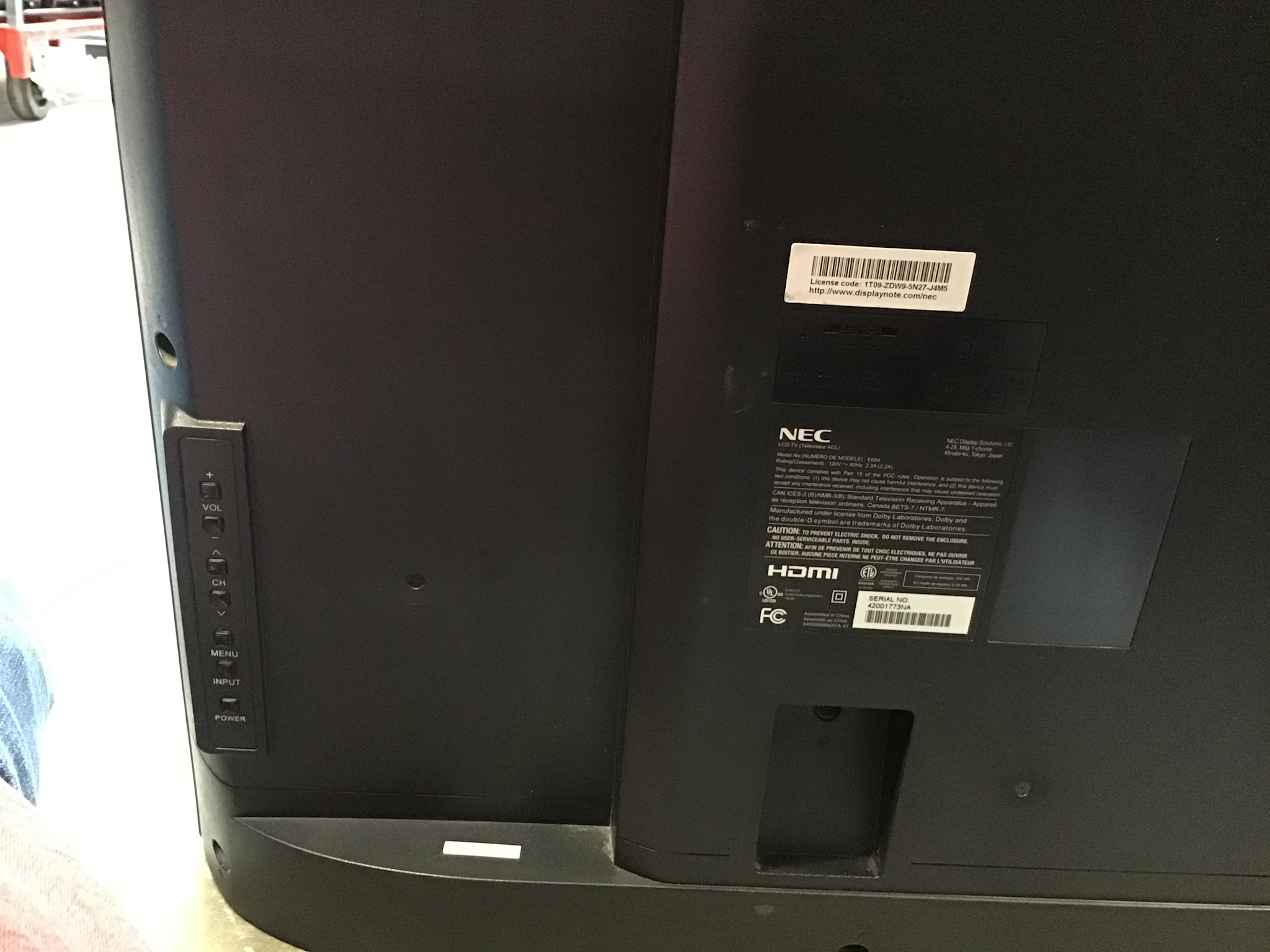 NEC 65” E654 TV - No remote or stand 4/17/26
