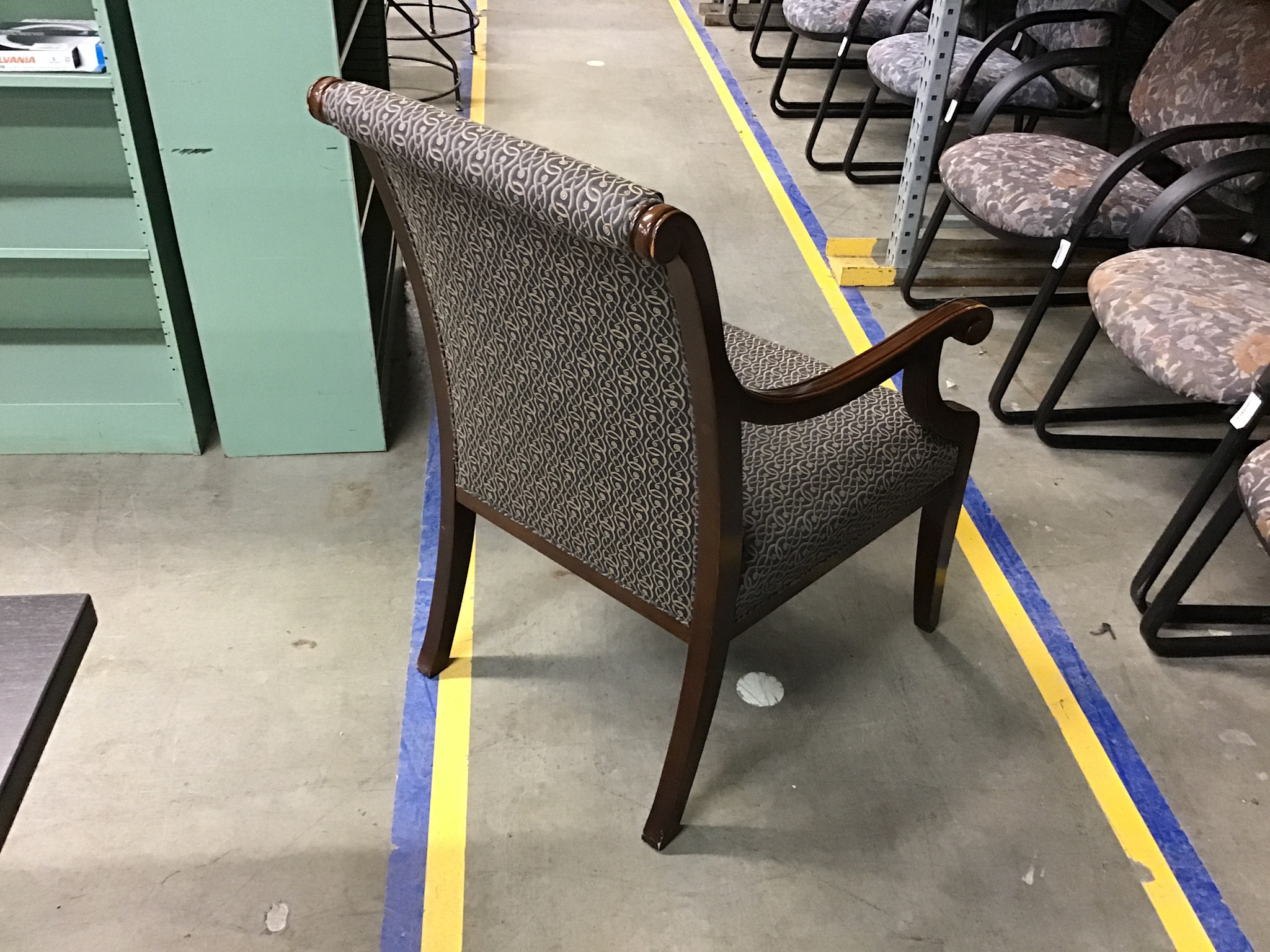 Wood frame blue and tan pattern cushioned chair 1/14/26