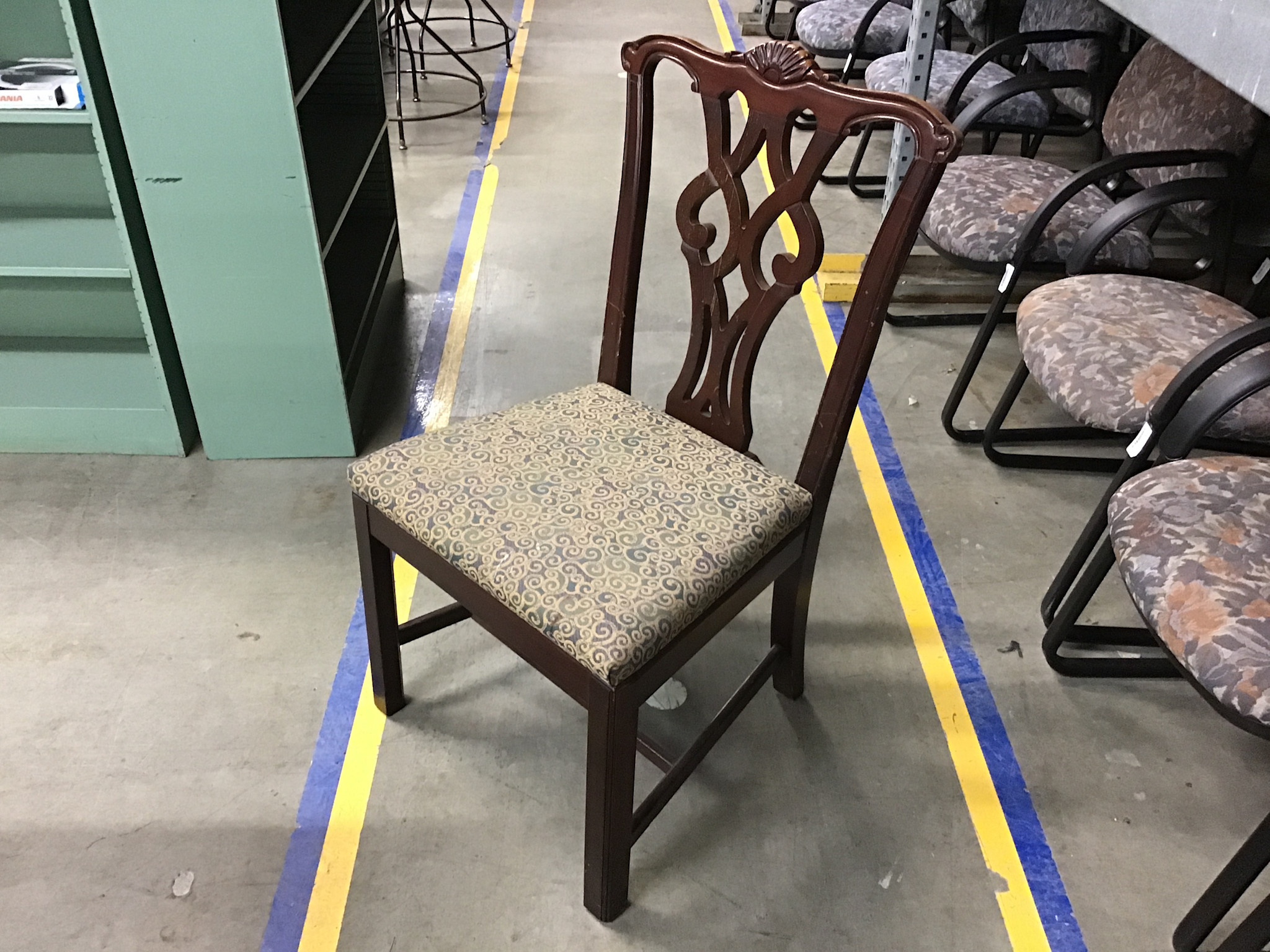 Wood frame teal pattern cushioned seat chair - some scuffs 1/14/26
