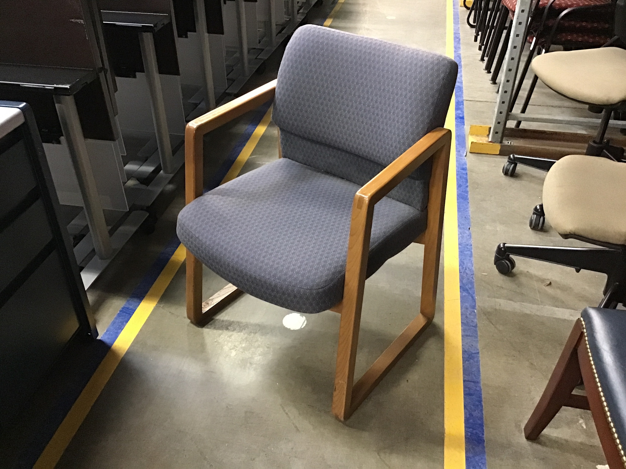 Wood sled frame blue cushioned side chair 1/14/26